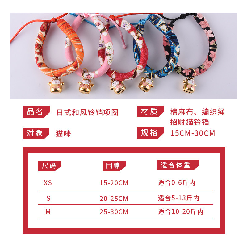 Japanese wind cat collar bell dog lettering collar collar necklace pet supplies