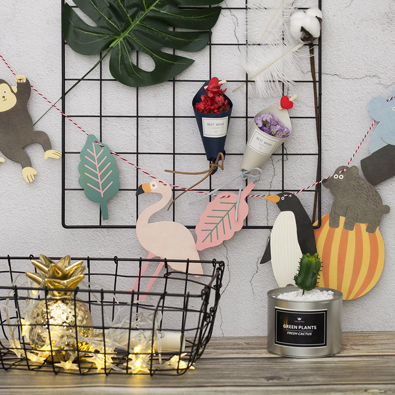 Black iron mesh white iron mesh animal pendant sailor bunting pendant mini love clip star light string wooden Nordic table frame