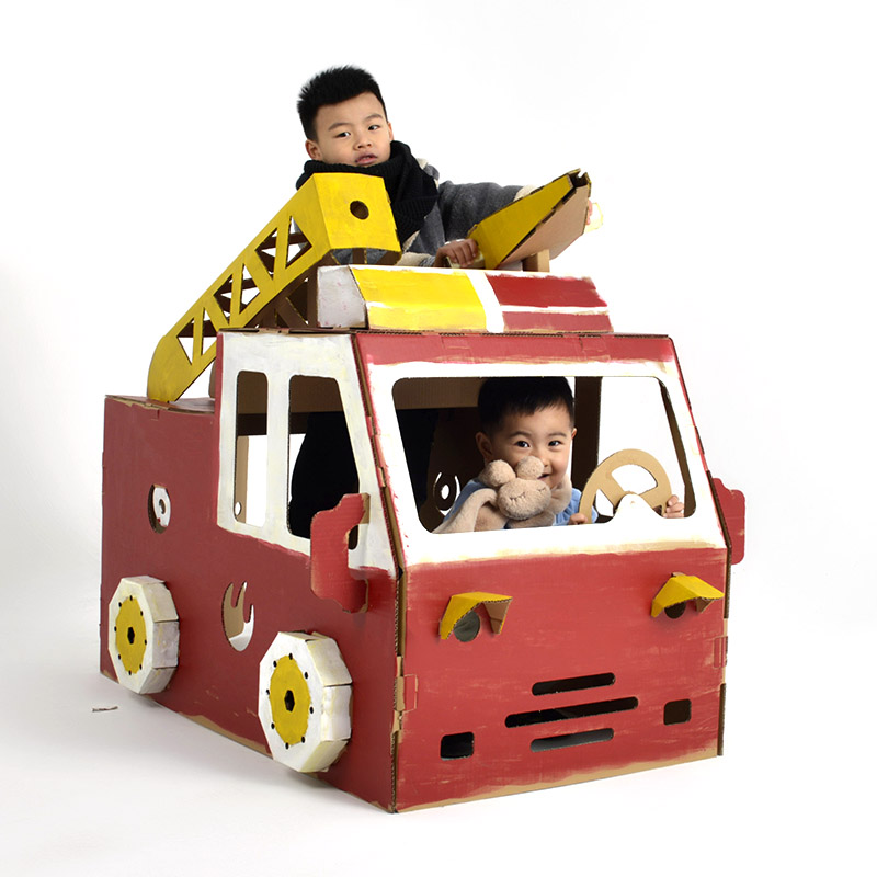 Children's carton car kindergarten toy cardboard diy hand-painted tank police car fire truck large model