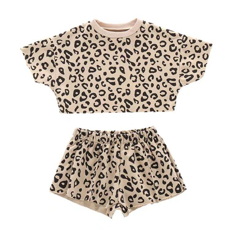 Girl's foreign BAO WEN short sleeve T-shirt suit 22 summer dress new trendy female baby short sleeve T-shirt shorts two-piece set
