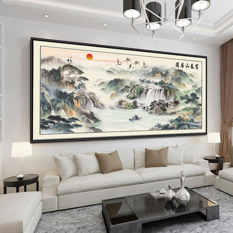 Welcome guest pine thread embroidered cross embroidered 2021 new embroidered water raw and rich living room landscape scenery Fuchun Mountain Gutu