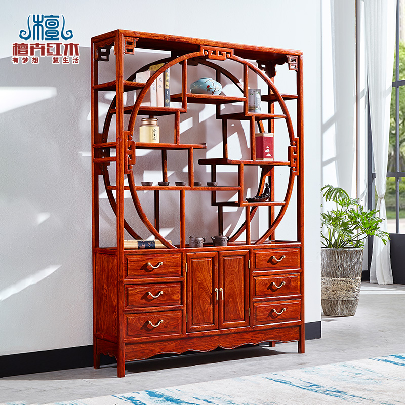 Mahogany Bogu shelf rosewood Duobaoge living room new Chinese style solid wood antique rack hedgehog red sandalwood display cabinet