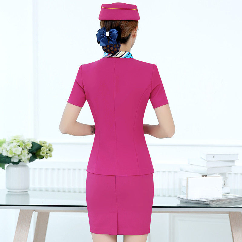 Hotel KTV welcome reception front desk art photo stewardess uniform summer work clothes professional dress skirt