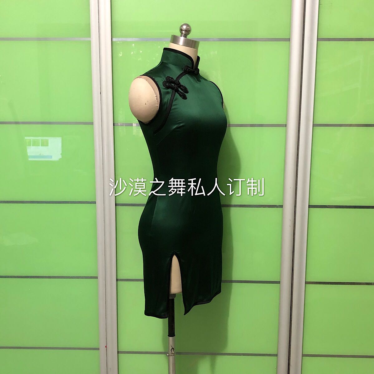 Real silk qipao's shoulder belly belly belly dance classical fusion style to perform the performance serve ink green volume tailor-made