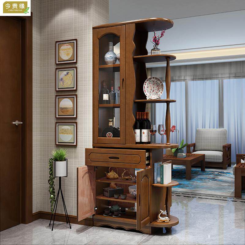 Solid wood Chinese-style small apartment entry porch partition cabinet hall cabinet double-sided door living room screen cabinet wine entry shoe cabinet