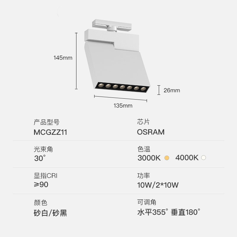 Black Double 20W 3000K 30° Black Double 20W 4000K 30° White Double 20W 4000K 30°