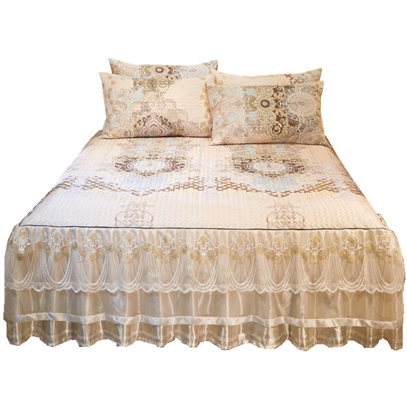 European-style lace bed skirt ice silk mat three-piece set 18m thickened foldable machine washable mat air conditioner soft mat 2m