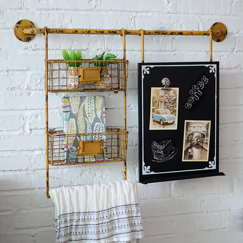 Industrial style retro old wrought iron wall decoration rack home store storage message board blackboard wall decoration