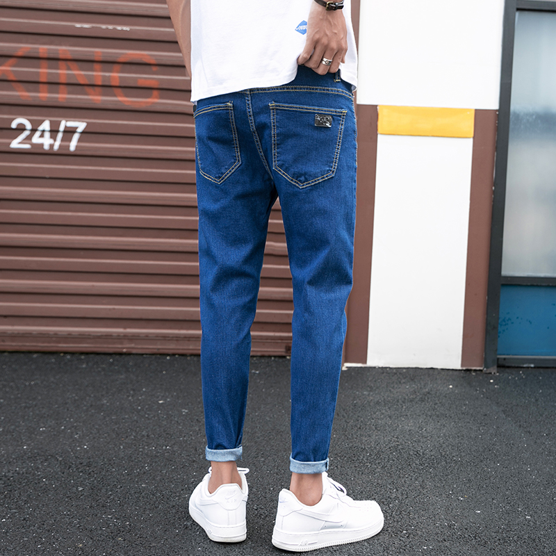 Summer 90% jeans Men's deep blue Chauding with a small foot 100 lapped Korean version Trend casual 9 Pants Men Ins