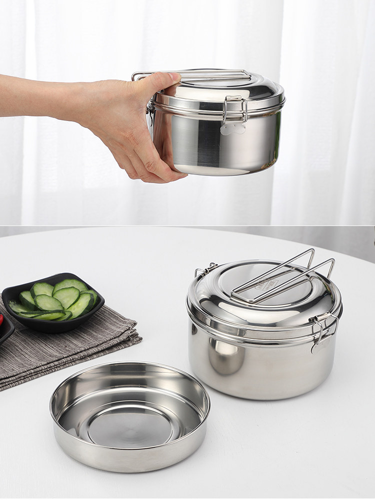 Thick steam box 304 stainless steel lunch box round single - layer cafeteria stainless steel lunchbox adult pot - box with lid