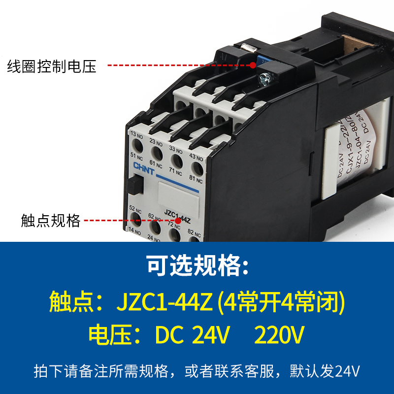 Chint contact relay JZC1-44Z four open four closed DC24v 36v 220v DC contactor 10a