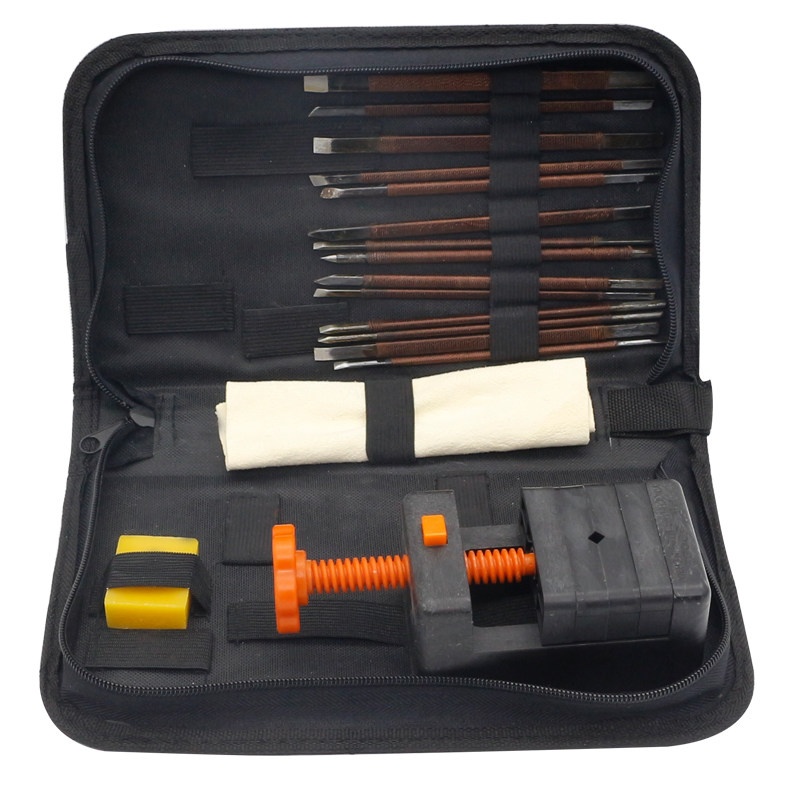 Manganese Steel Stone Carving Knife Suit Pine Wood 18 pieces of cover