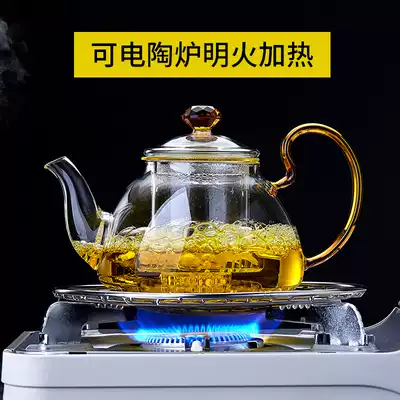 Glass cooking teapot single pot heat-resistant high temperature thick capacity filter tea set black crystal stove boiling water Tea Maker set