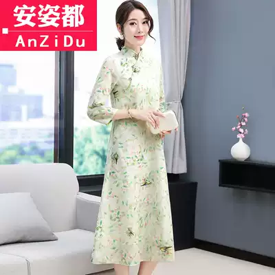 Cotton and linen tea Women spring and summer Zen literary dress Chinese style women's retro skirt improved cheongsam dress
