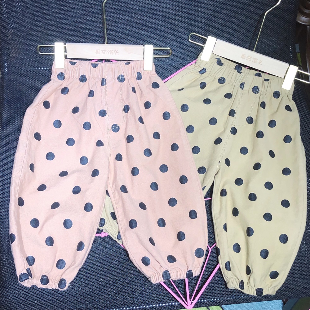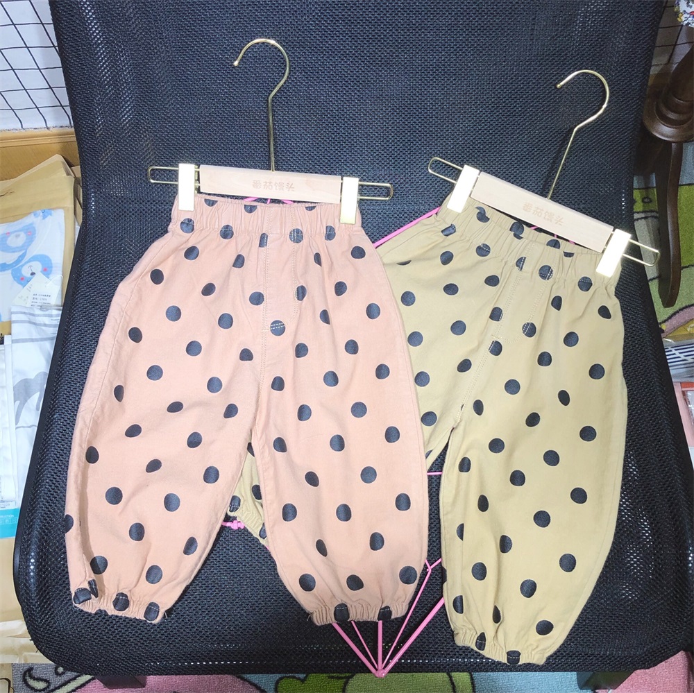 Children's clothing Korean girls spring and autumn new 2022 cotton and linen polka dot bloomers Western style pants trousers harem pants thin section