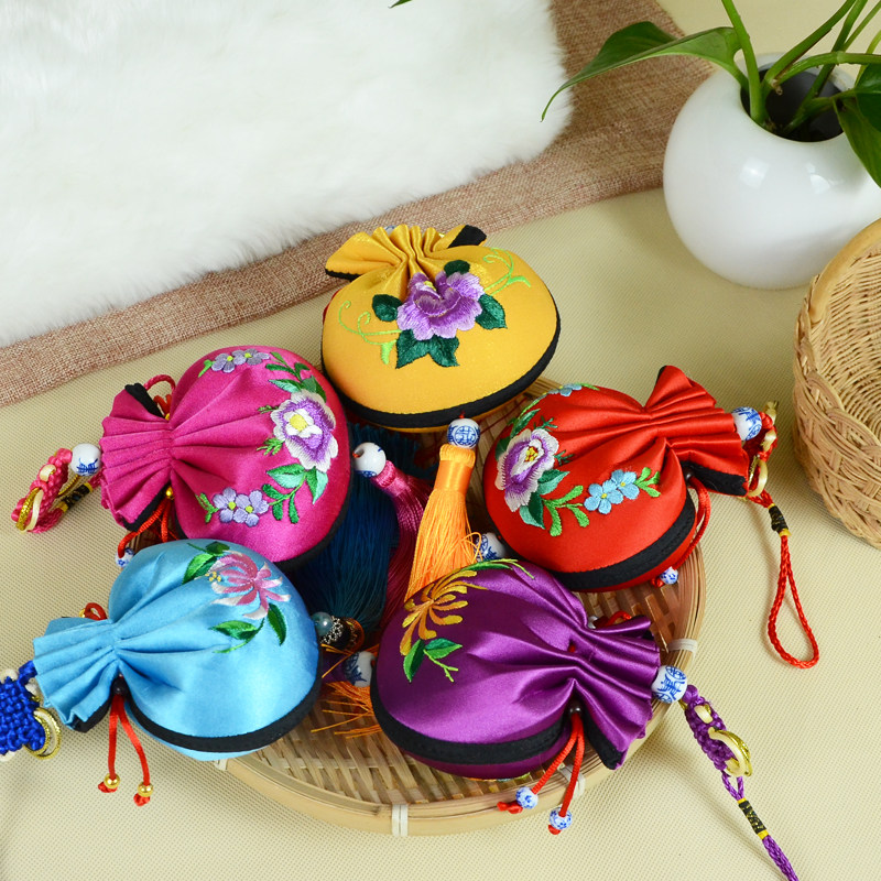 Handmade cloth art embroidery decoration hanging decoration small Qing Dynasty fragrant bag pocketbook with small gift folklore with traditional Chinese characteristics