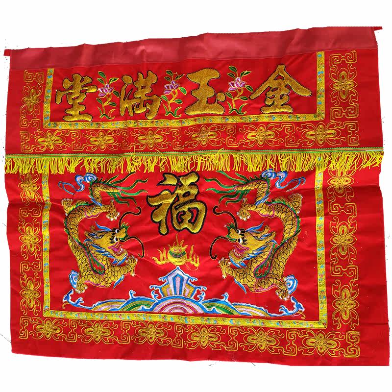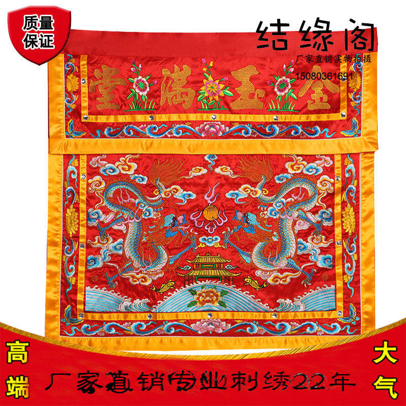 Tai Wai Double Dragon Theatre Pearl Multi-Optional Golden Jade Full Hall Table Surrounding Taoist Supplies Twin Dragon Embroidered Table Dress Case