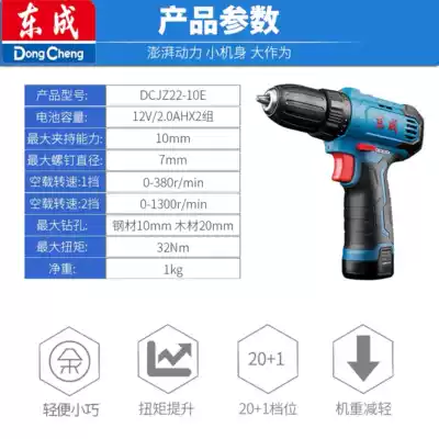 Dongcheng DCJZ22-10E lithium rechargeable drill 12V electric drill Dongcheng lithium rechargeable drill two-speed charging drill