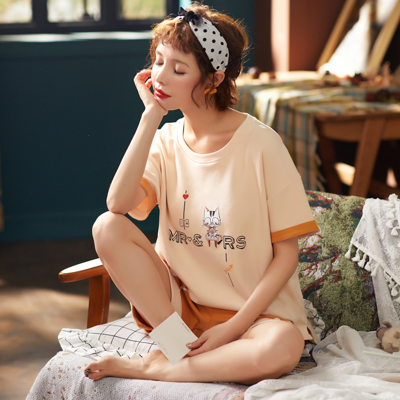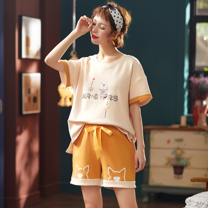 Pajamas Woman Summer Han Edition Qingxin Student relaxed short sleeve cute suit summer wear leisure home clothes