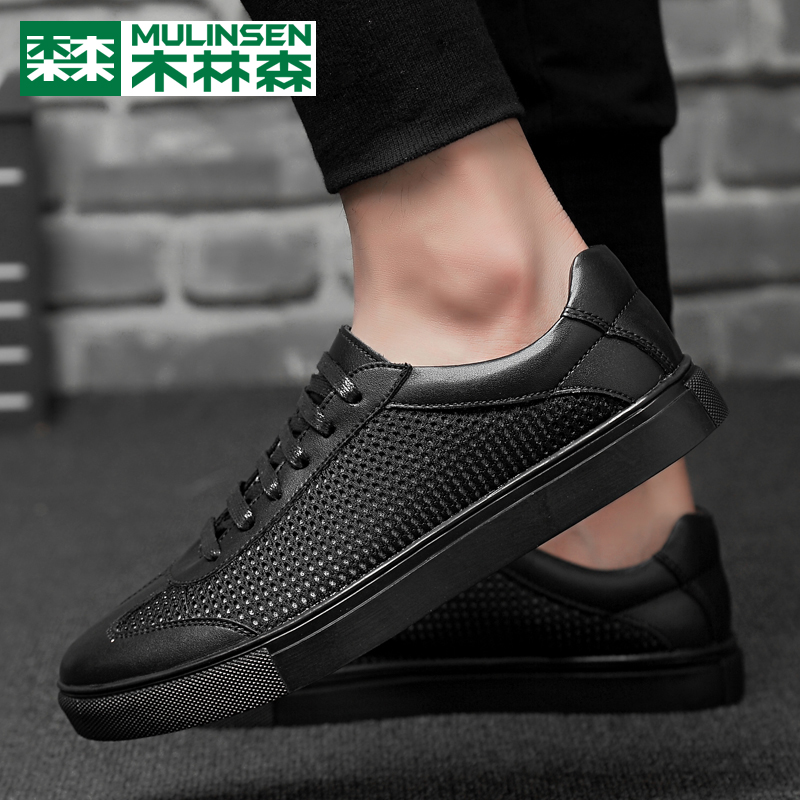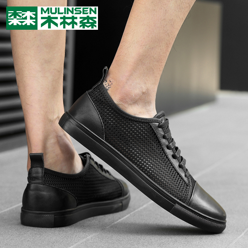 Wood Linson Men Shoes 2022 New Summer Nets Shoes Breathable Casual Little Leather Shoes Genuine Leather Han Prints 100 Hitch Board Shoes