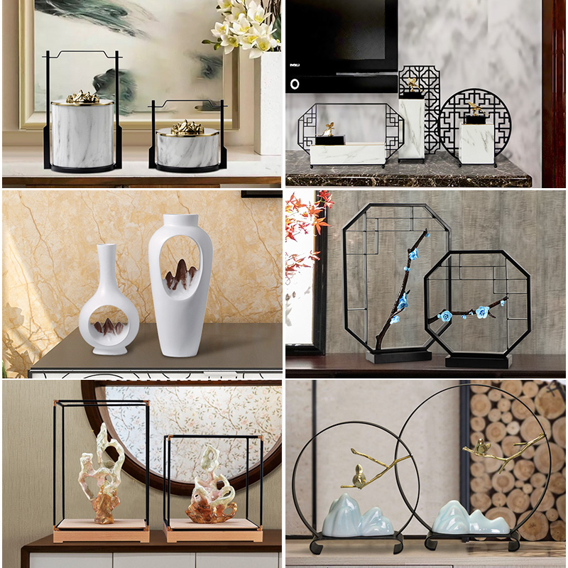 New Chinese Zen light luxury ceramic decoration living room wine cabinet porch soft decoration hotel model high-end decoration
