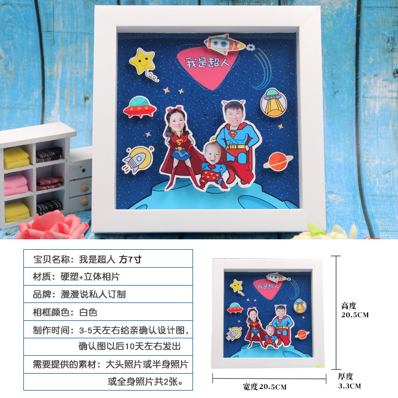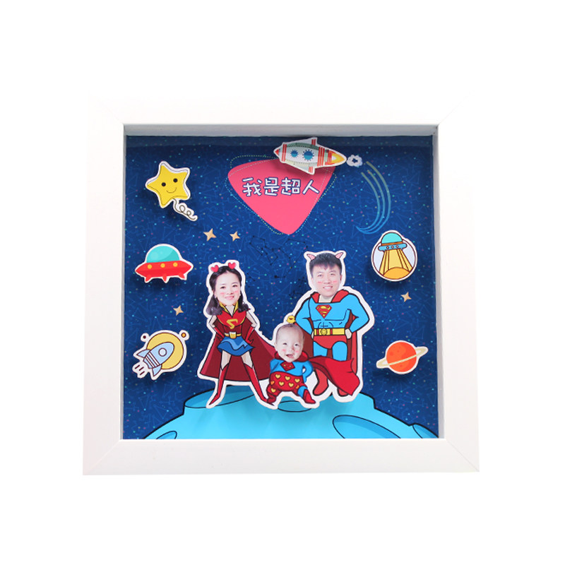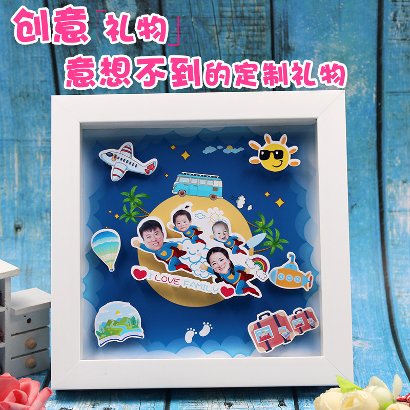 Custom diy cartoon photo frame Cubist family of three-mouth Four-mouth full family fortune Birthday Gift Pendulum creative Anniversary