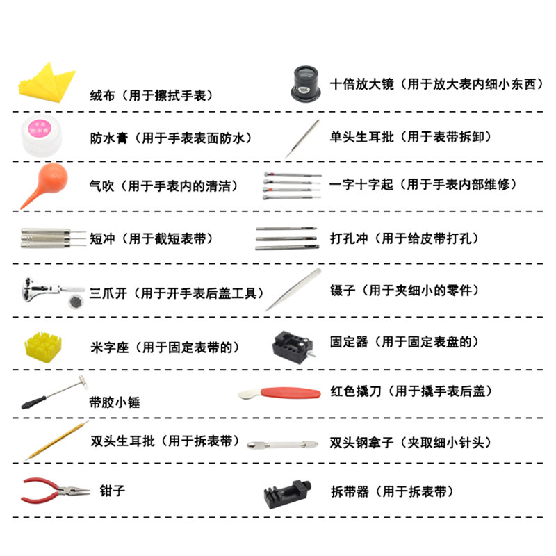 Upgrade Tool Kit 108 Root Table Ear Repair Work Kits Luxury version Tool Packaged 37MM Economy Utility Type of jacket Furnishing Watch Magnifier Suit Unpacking with tools 11 pieces of kit (card fit) 37MM