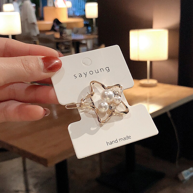 Korea ins net red pearl hair clip Dongdaemun wild flash diamond word clip Star hollow BB clip Super fairy hair ornaments