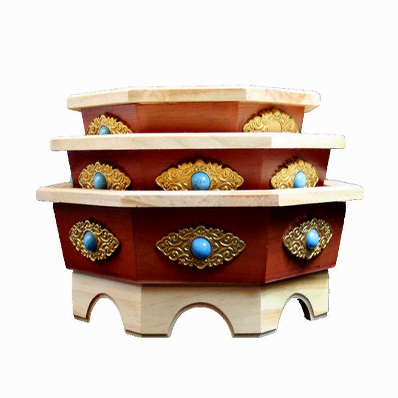 Mongolian plate Tableware Ethnic minority supplies Mongolian restaurant supplies Wooden milk food plate Octagonal wooden plate Fruit plate