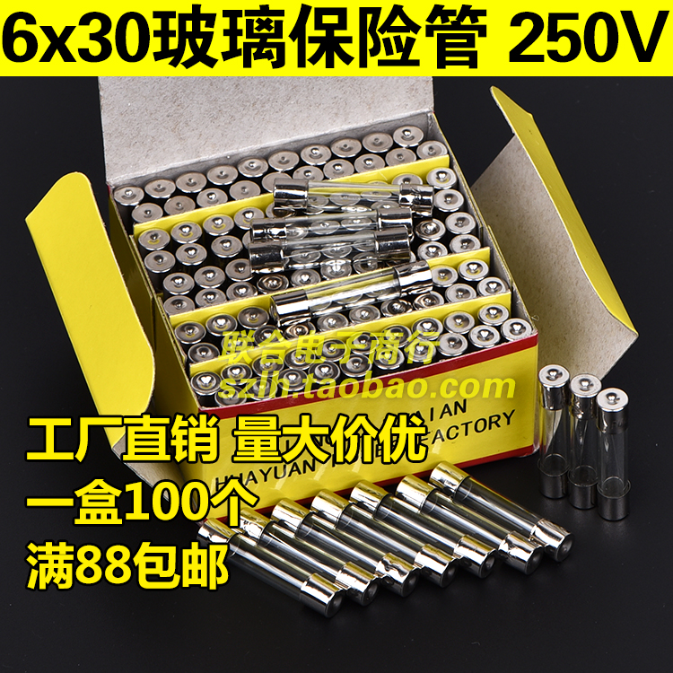 6 * 30mm glass fuse tube 250V 1A2A3A4A5A6AA8A10A12A15A20A25A30A whole box