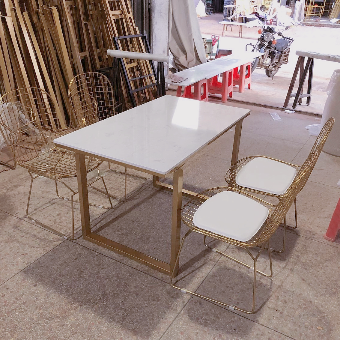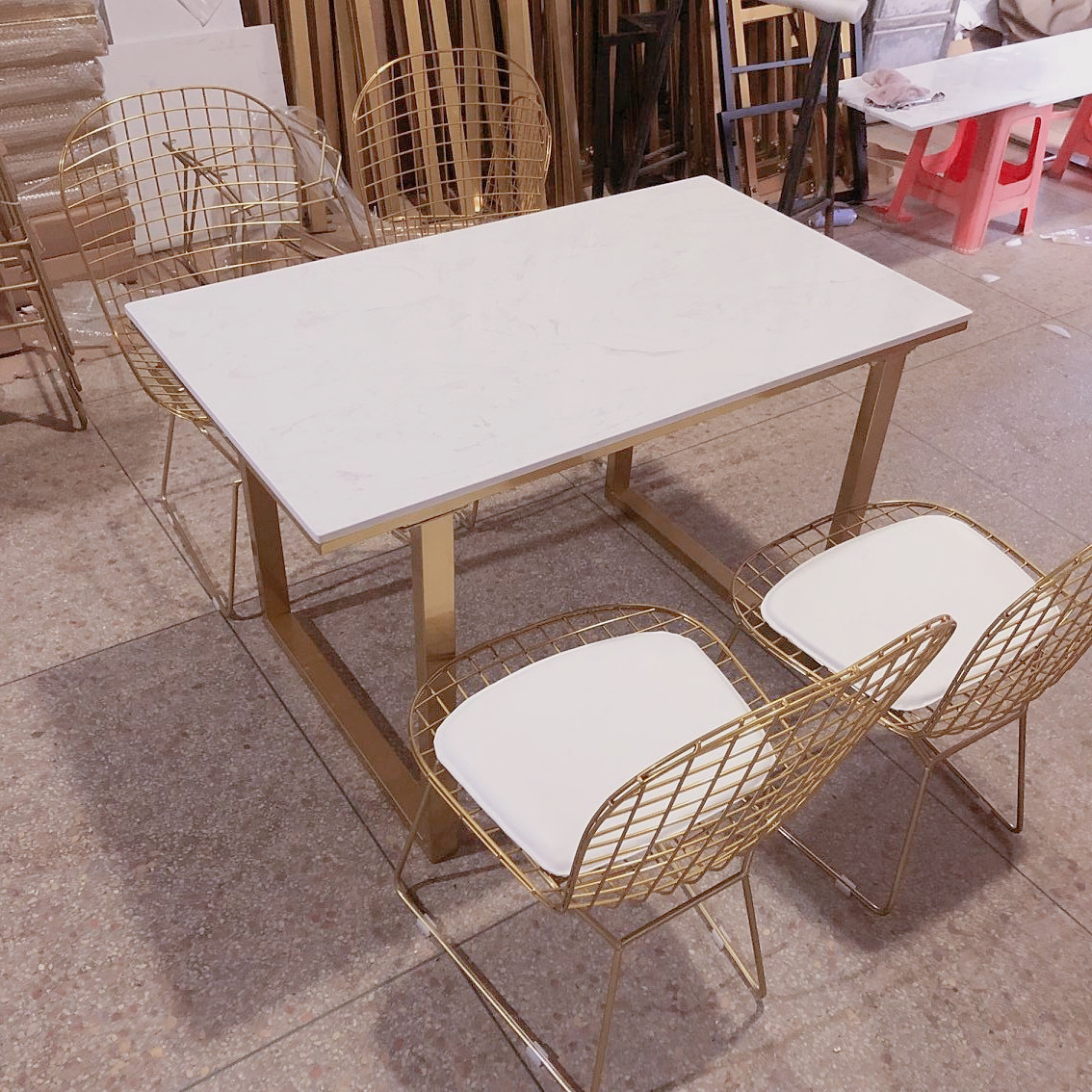Nordic Iron Art Dinner Table Rectangular Table Home Minimalist Marble Table Dining shop Milk Tea Shop Table and chairs Composition