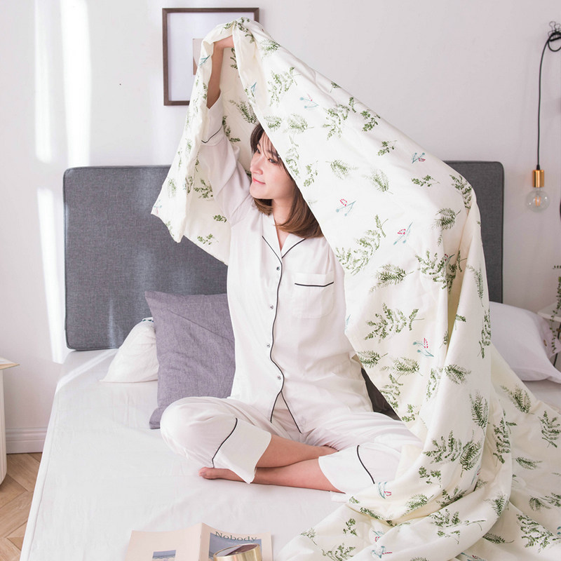 High-end tribute satin cotton 60 long-staple cotton air-conditioning quilt small fresh white pastoral style silky naked sleeping summer cool quilt