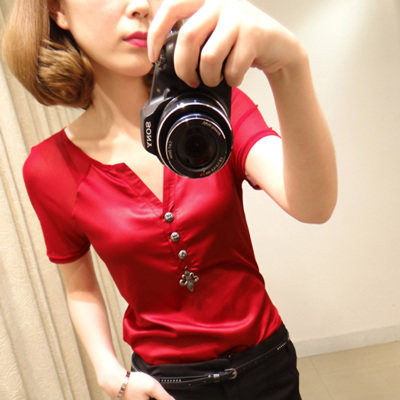 Pop brand 2021 summer new women's Korean fashion sexy V-neck short-sleeved T-shirt large size wild thin top