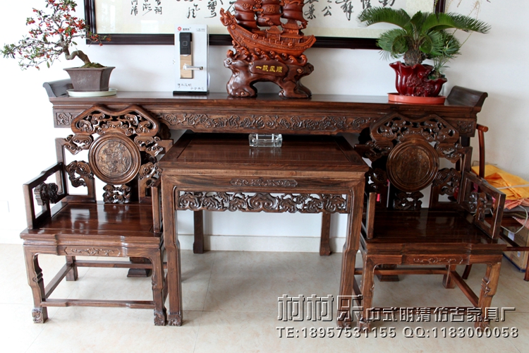 Lingzhi Flower Shelf One middle hall four pieces (color optional) for the table One Eight Immortals Table Lingzhi Chair Three Sets of three sets (color Optional) Wood Shelf Packaging per cubic meter