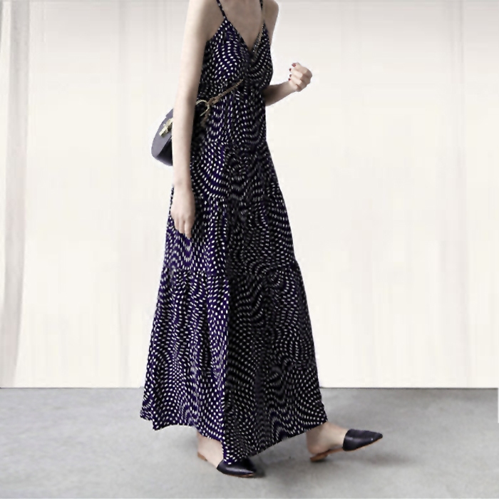 Summer large size women's dress French style retro design sensation little crowdpoints V collar harness foreign dress Heben over knee long skirt