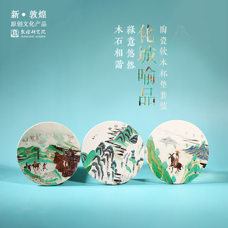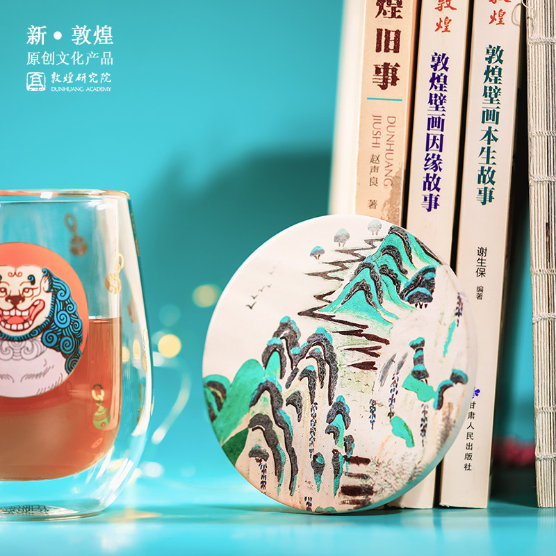 Dunhuang Research Institute Green Landscape Water Absorbent Ceramic Coaster Insulation Pad Museum Cultural and Creative Gift Birthday Gift