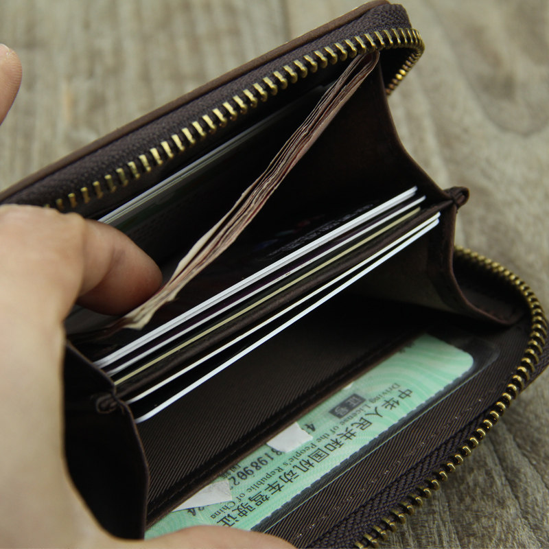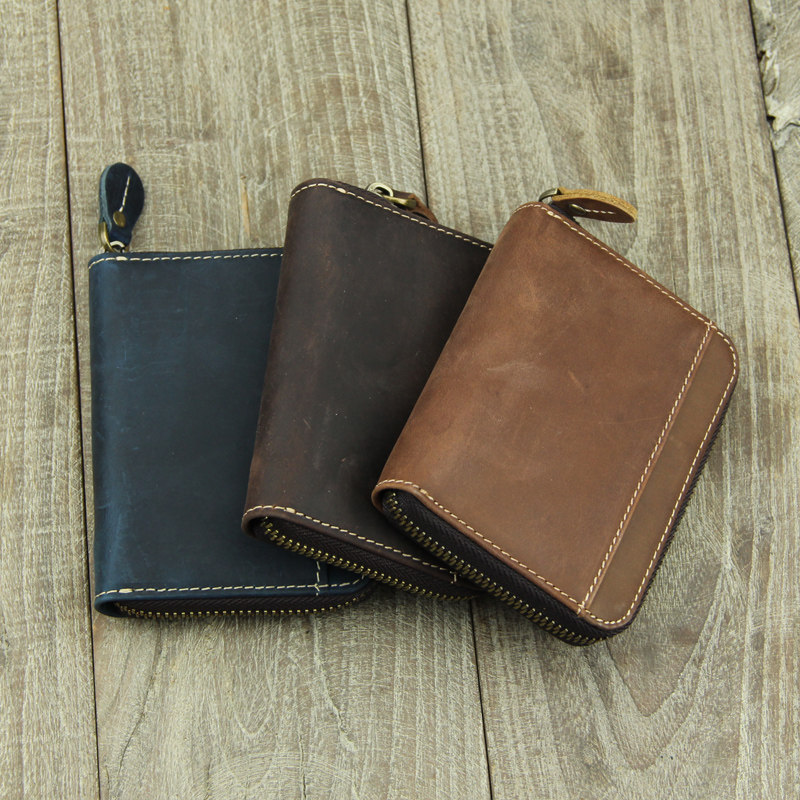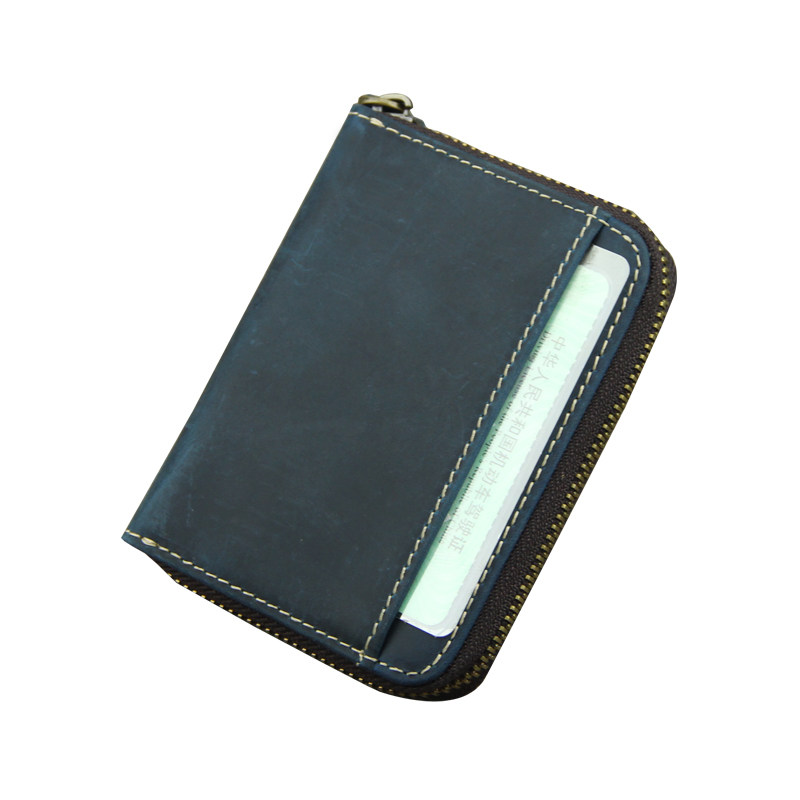 Crazy horse leather zipper cowhide card bag multifunctional retro coin purse driver's license bag large capacity multi-card card bag