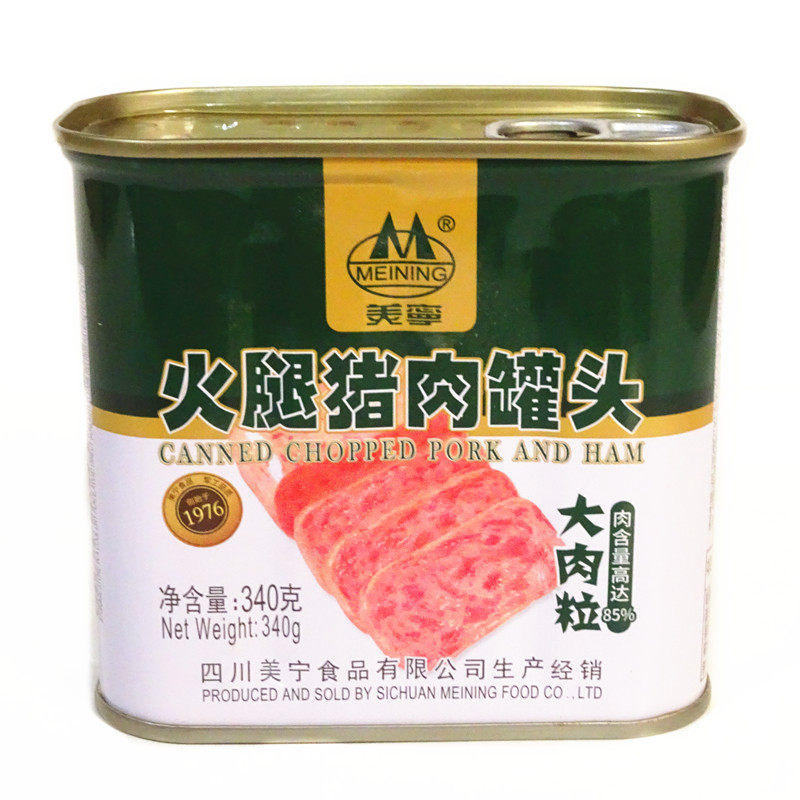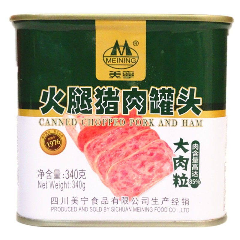 Whole box 24 cans of Meining ham pork Afternoon Meal Meat Canned 340g Hot pot Spicy Hot Soup Pan Dish Ready-to-eat