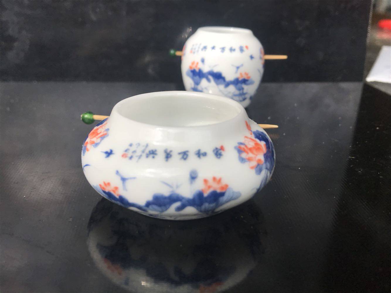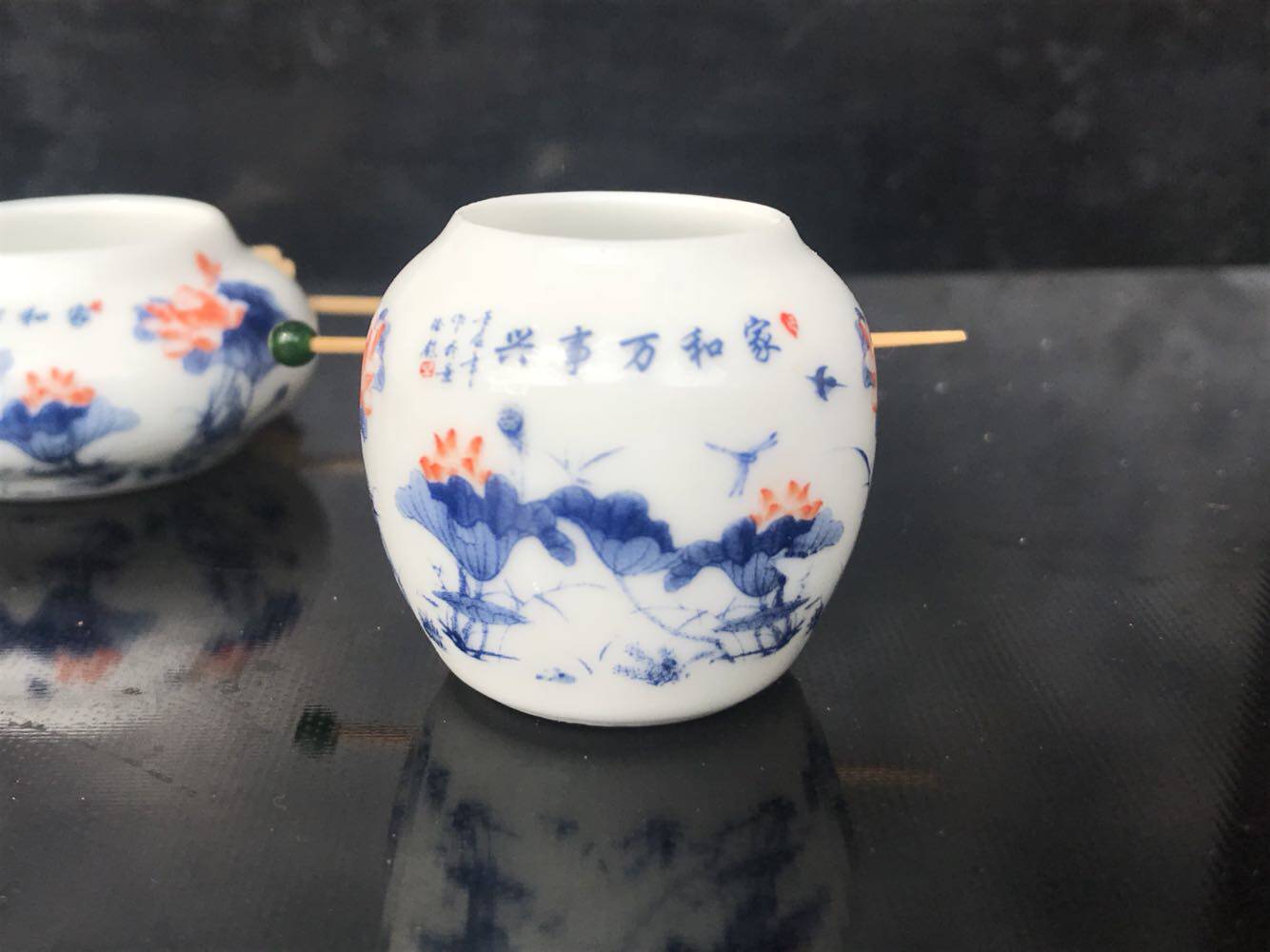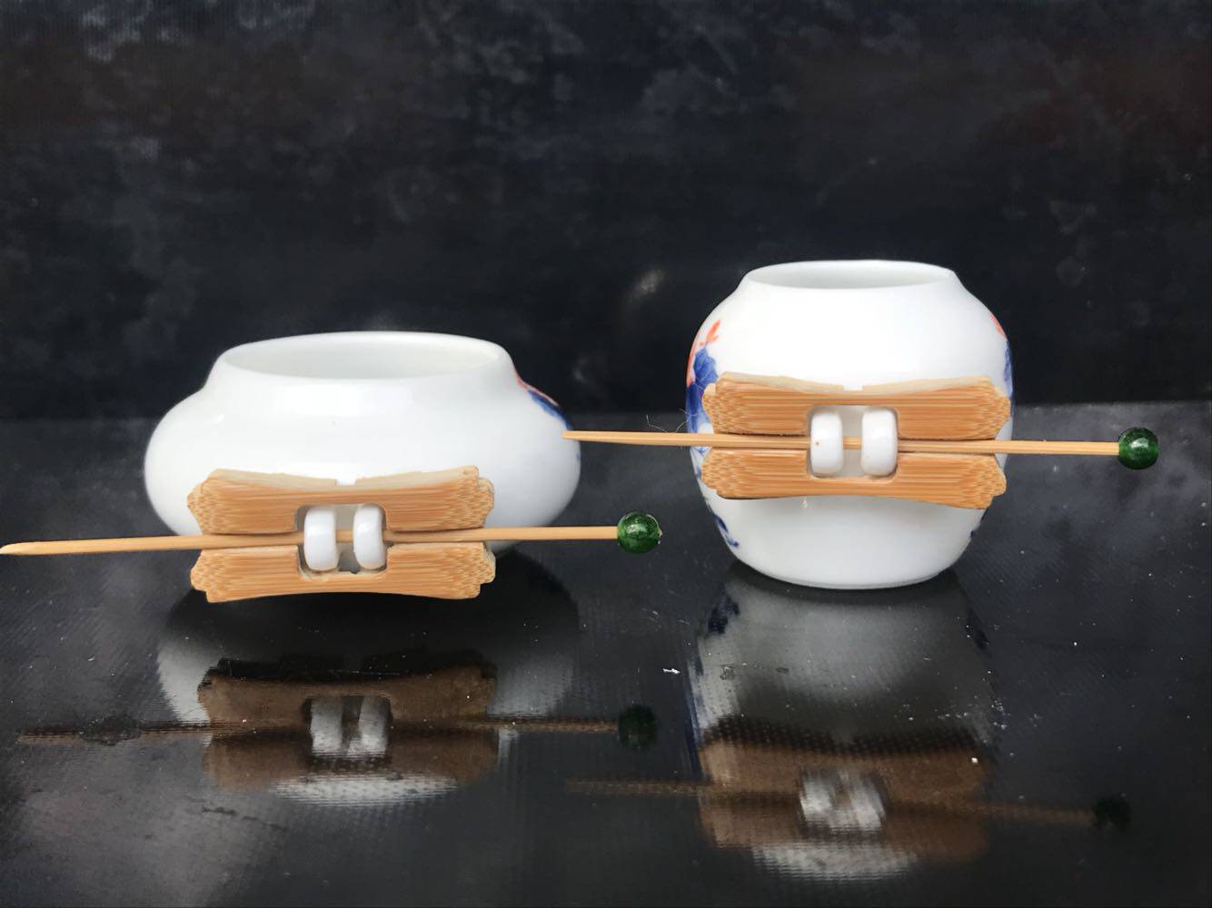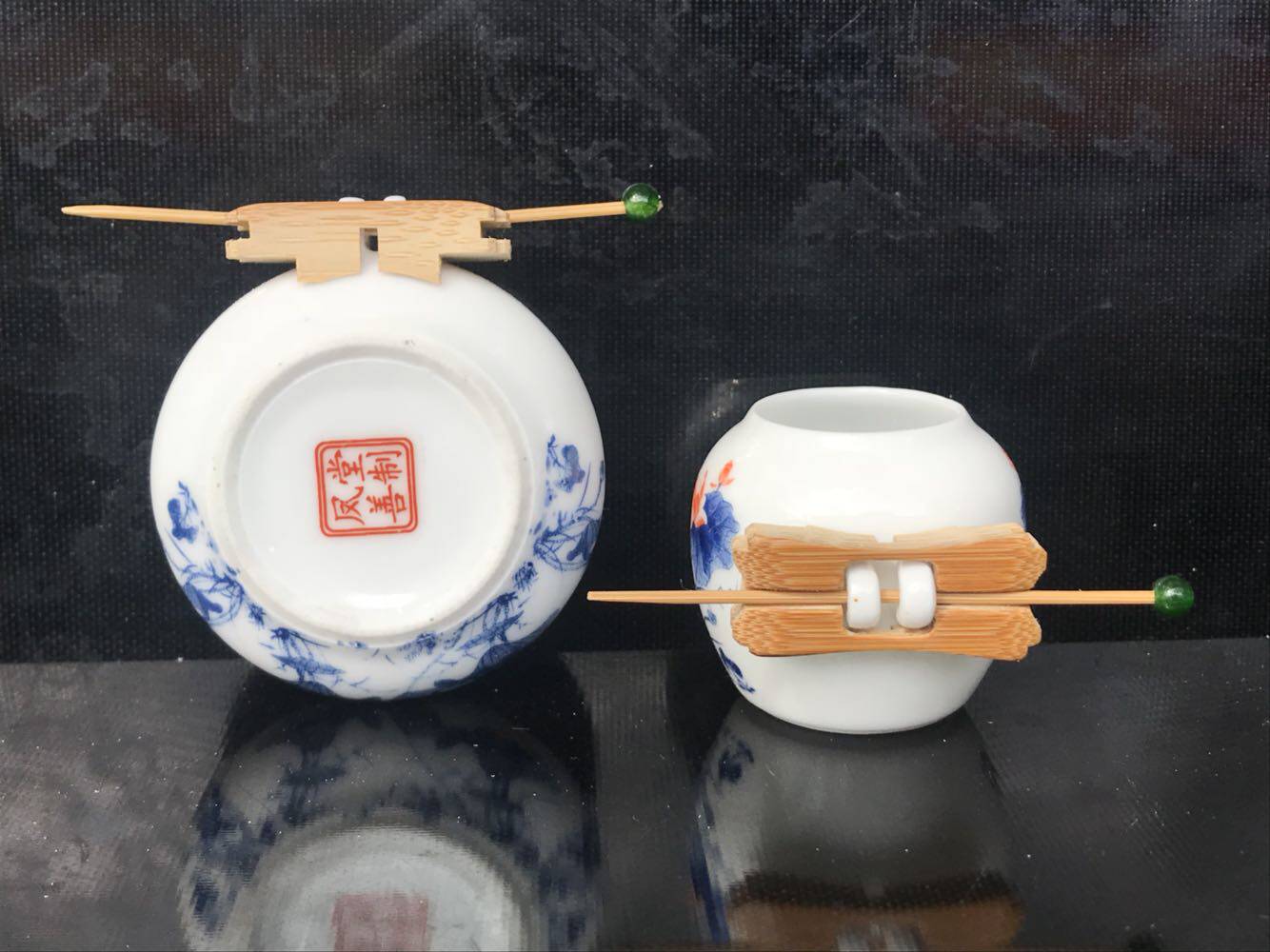 Embroidered eye jar White eye cup Six-ding cylinder Fengshantang style cylinder plus three silk old bamboo inlaid head 50 yuan set