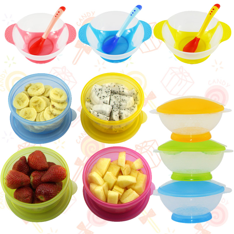 Warm suction cup bowl spoon Red warm suction cup bowl spoon Blue warm suction cup bowl spoon Yellow training bowl spoon set Blue training bowl spoon set Green multi-functional food scissors Yellow food bowl set mixed color (4 pieces