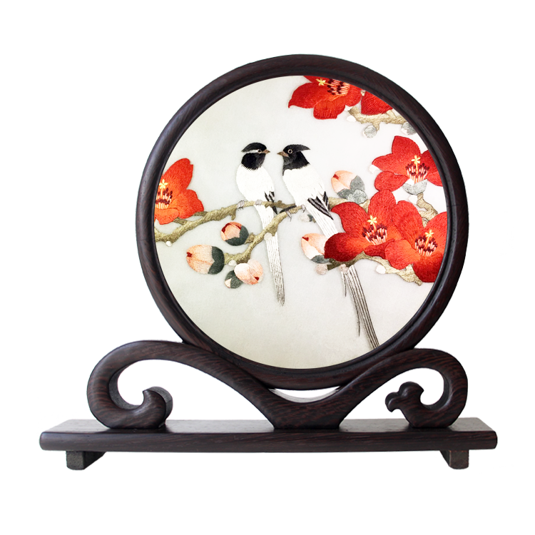 Kapok thrush Cantonese characteristics Double-sided embroidery good luck Lychee bamboo panda Double-sided embroidery decoration peacock Double-sided embroidery decoration blessing Double-sided embroidery decoration mandarin duck Double-sided embroidery decoration plum blossom panda