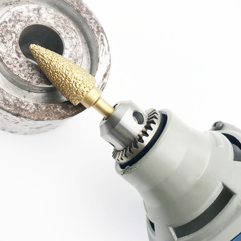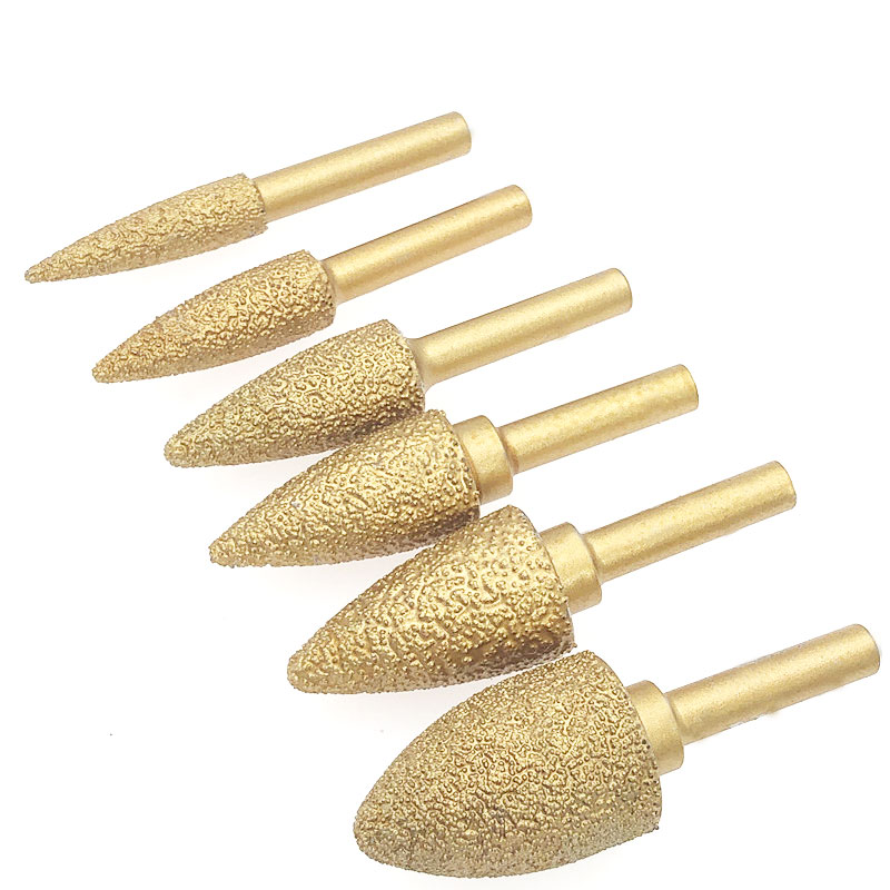 Cast iron diamond grinding head bullet head brazing handle 6*6-head 20 mm diameter 40 mesh rough grinding tool 8011