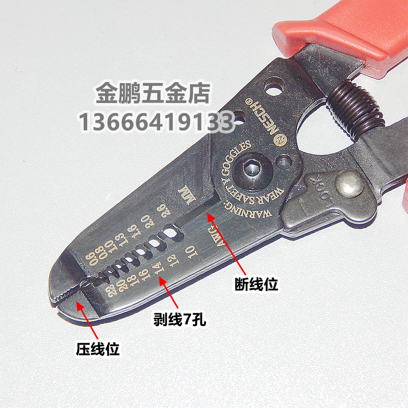 6-inch (resistant) 7-hole stripping pliers for about 150 gr