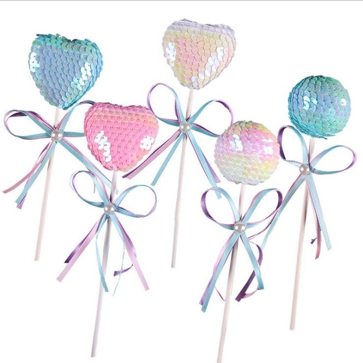 Heart-shaped butterfly loving ball plug-in red lollipop baking plugin birthday cake decoration accessories