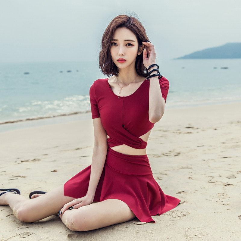 DK Swimsuit 2022 new conservative small chest gathering sexy shade and skinny Korean bubble hot spring two pieces skirt