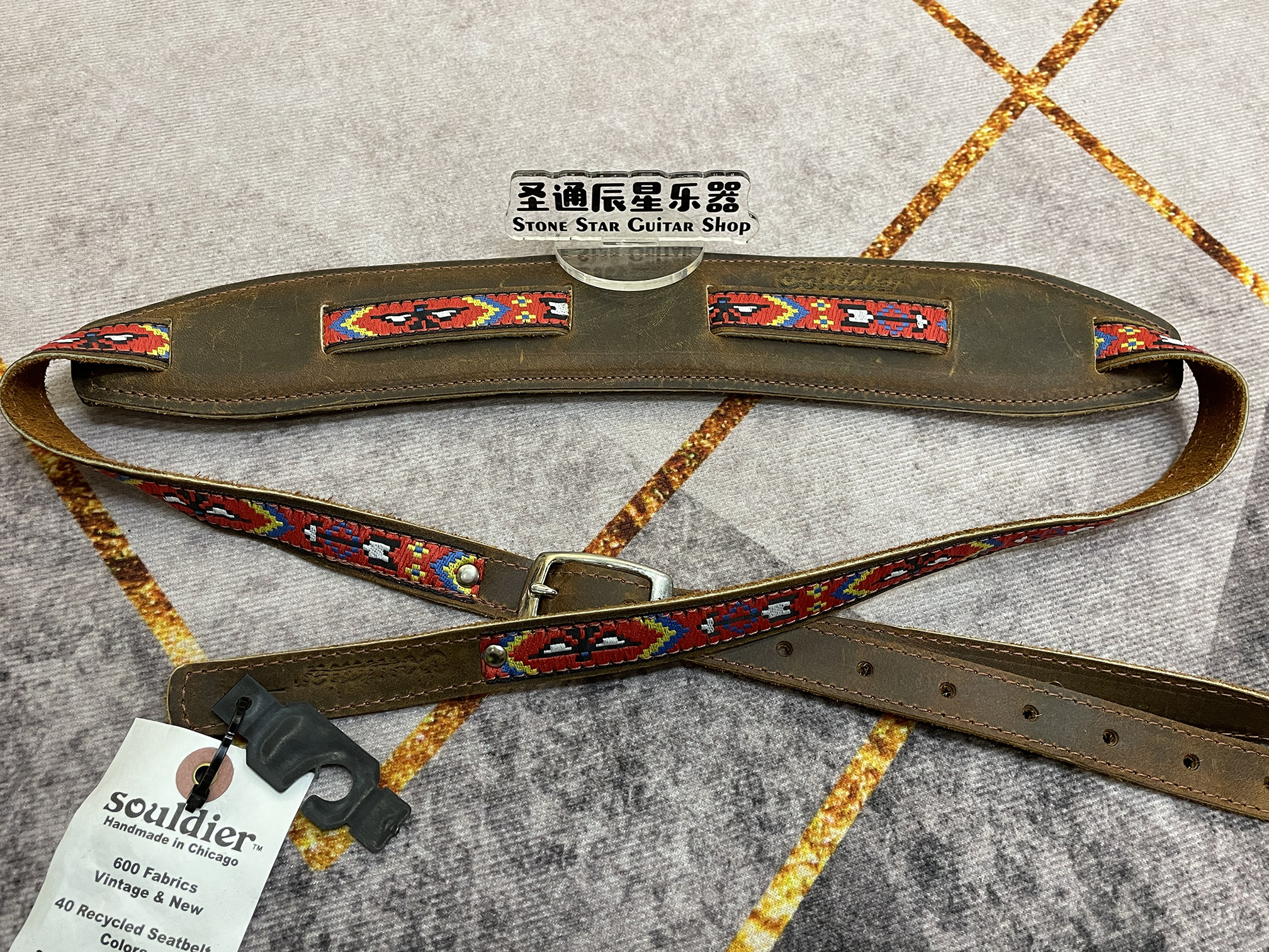 American-made Souldier vintage retro old series leather thickened shoulder pad fine section electric guitar strap