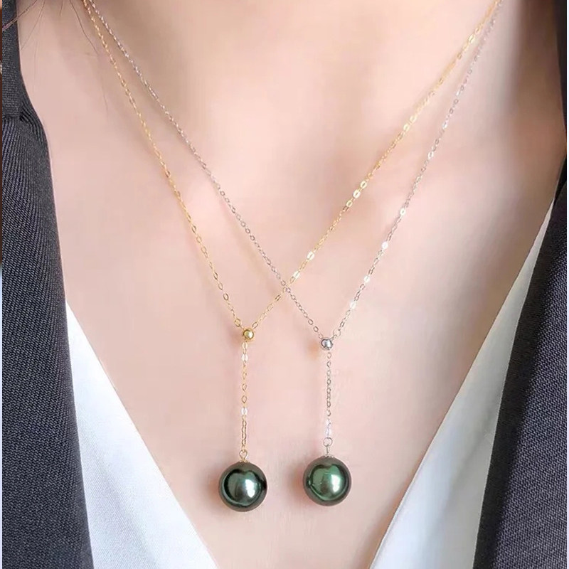 Mother's Day welfare natural pearl 18K gold Y word chain sea water black pearl Takei Necklace Chopin K White
