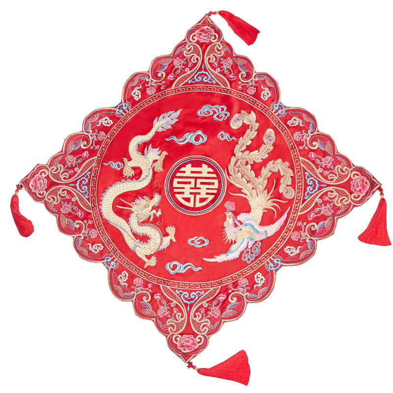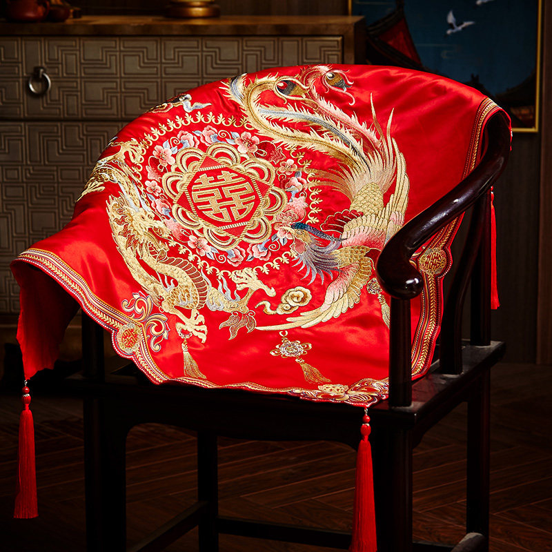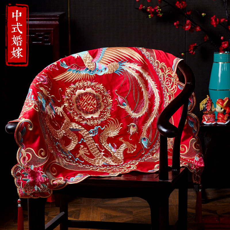 High-end bridal hijab Chinese wedding Golden Dragon Golden Phoenix embroidery big red hijab wedding red hijab New red hijab