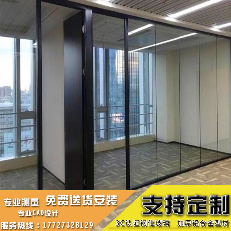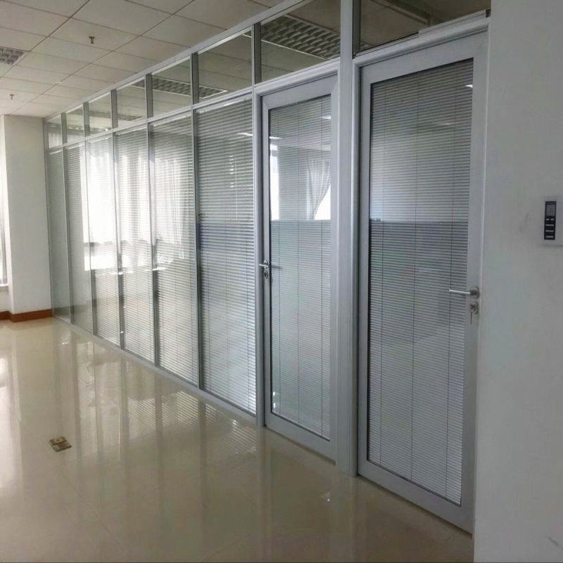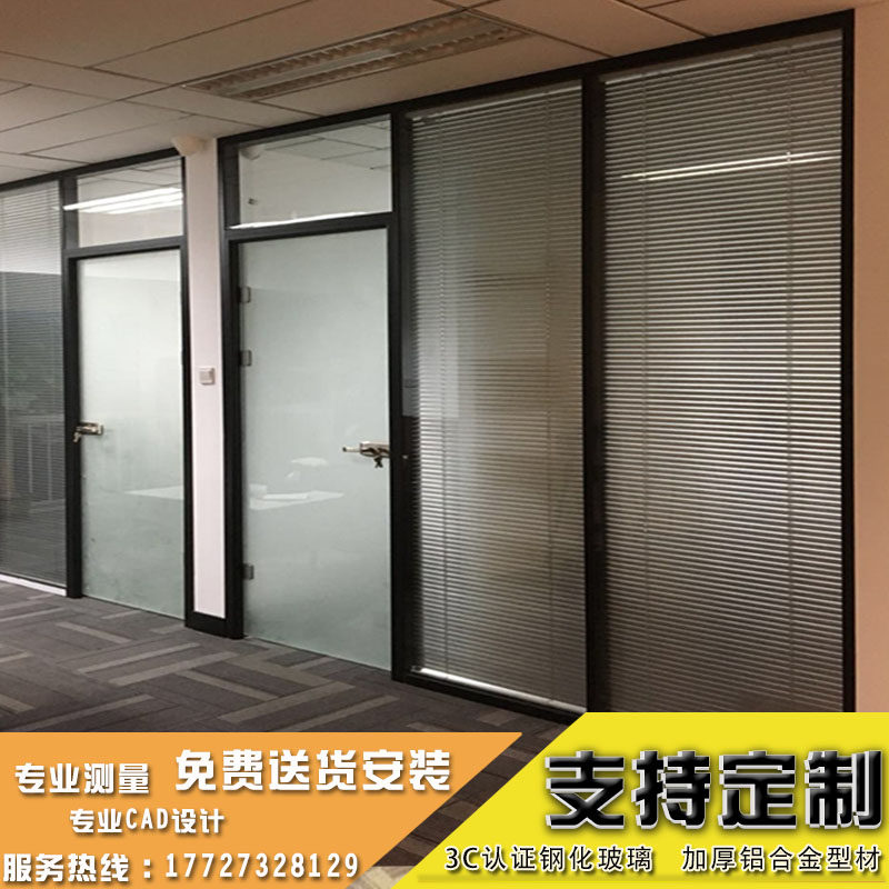 Office glass partition wall Aluminum alloy partition Double glass with louver high partition wall Stainless steel single layer glass