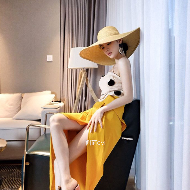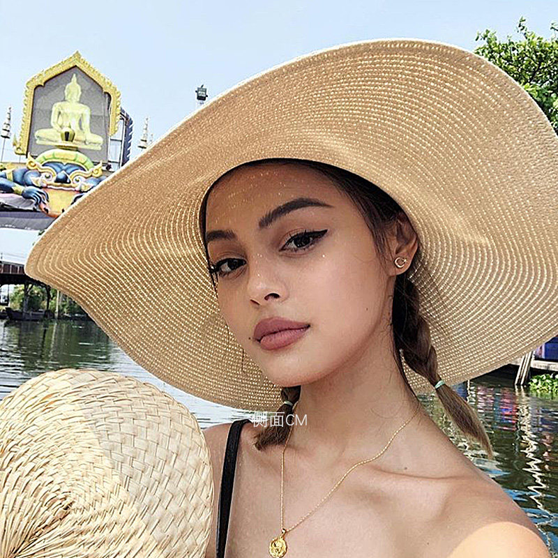 Large along straw hat women summer holiday seaside large peak beach hat sunscreen sunscreen style new grass visor sunhat sunhat